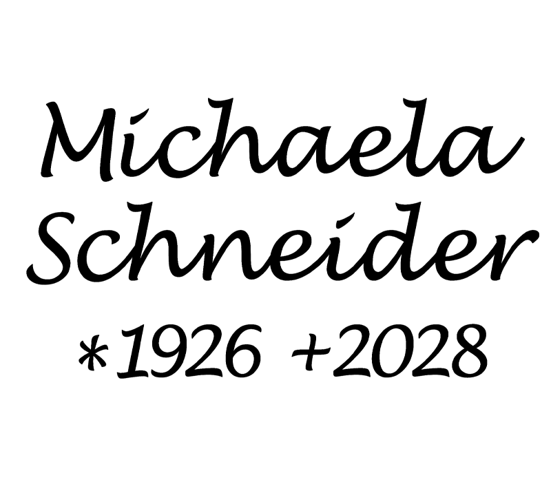Die Beschriftung einer Urnenwand bzw. Urnenwand-Schrifttafel dient der individuellen Kennzeichnung der Grabstätte und dem Gedenken an den Verstorbenen. Sie umfasst in der Regel den Namen, das Geburts- und Sterbedatum sowie optional einen kurzen Spruch. Die Beschriftungen werden hochwertig (ca. 0,7 mm tief) in die Tafel graviert. Anschließend wird die Gravur zur besseren Sichtbarkeit geschwärzt/patiniert und mit einem wetterfesten Schutzlack versiegelt.